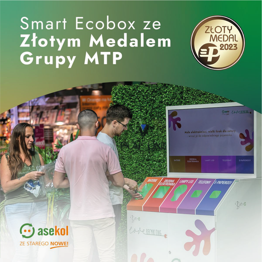Smart Ecobox to inteligentne urządzenie do selektywnej zbiórki elektroodpadów, dopasowane do potrzeb klienta i zarządzane aplikacją.